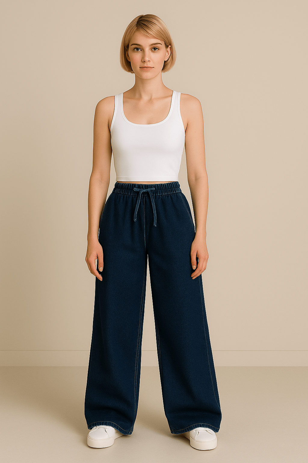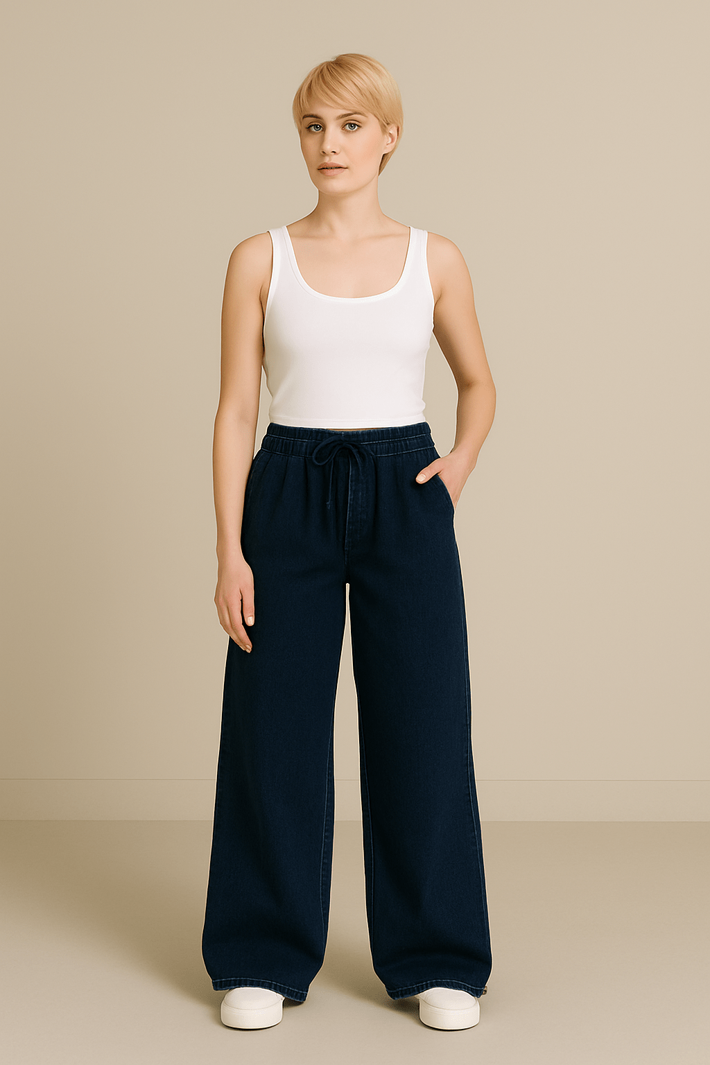 Pull on wide denim
